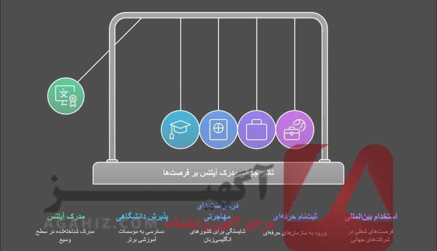 مدرک آیلتس یک مدرک معتبر بینالمللی است که سطح زبان انگلیسی شما را اثبات میکند. بسیاری از شرکتها، سازمانها و دانشگاههای برتر جهان این مدرک را بهعنوان یکی از شرایط اصلی پذیرش قرار دادهاند.